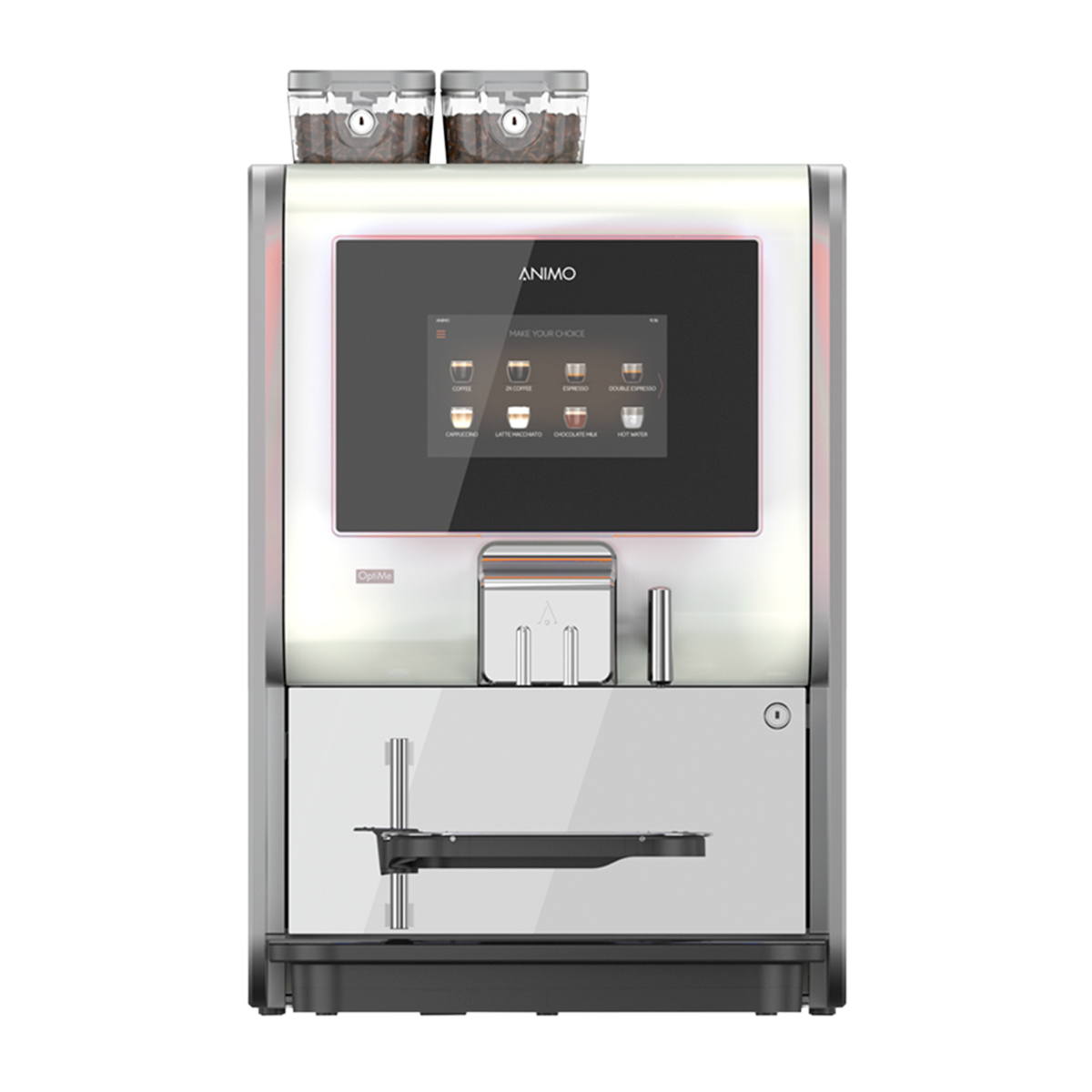Die Animo OptiMe 12 FM bringt die Welt des Kaffeehandwerks in moderne Büros, Lounges und Hotellobbys. Mit Frischmilchsystem, Keramikmahlwerk und Reverse-Espresso-Brühtechnologie ist sie ideal für Nutzer, die bis zu 125 Tassen täglich in konstanter Qualität und Barista-Optik wünschen – und das auf kompaktem Raum.