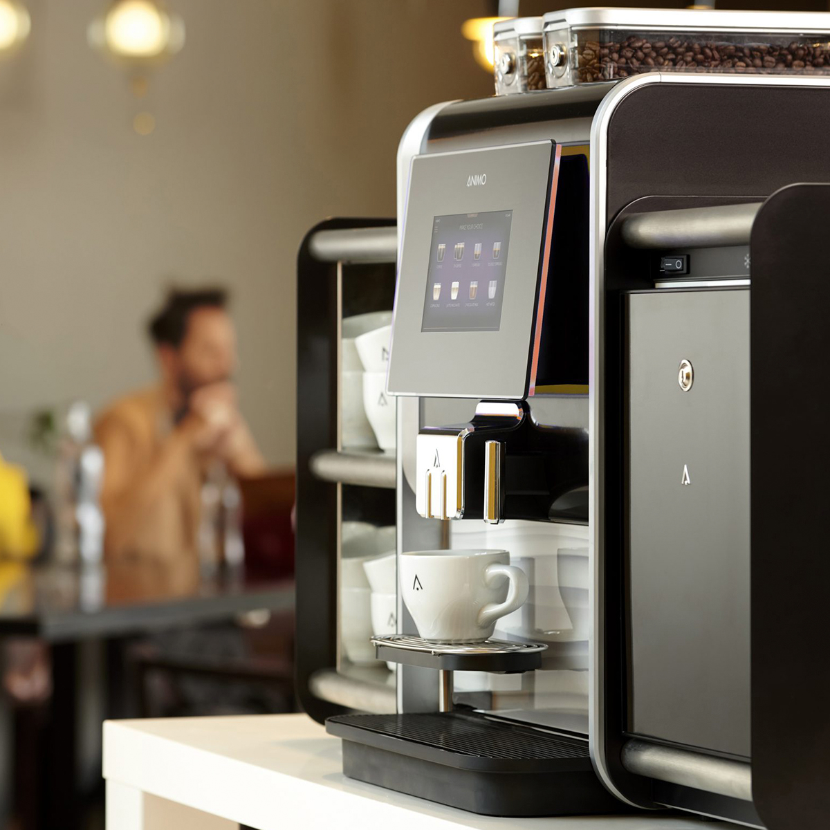 Die Animo OptiMe 12 FM vereint kompaktes Design mit echter Kaffeekompetenz. Frischmilch, Touchscreen und Keramikmahlwerk – ideal für alle, die auf wenig Raum nicht auf Qualität verzichten möchten.