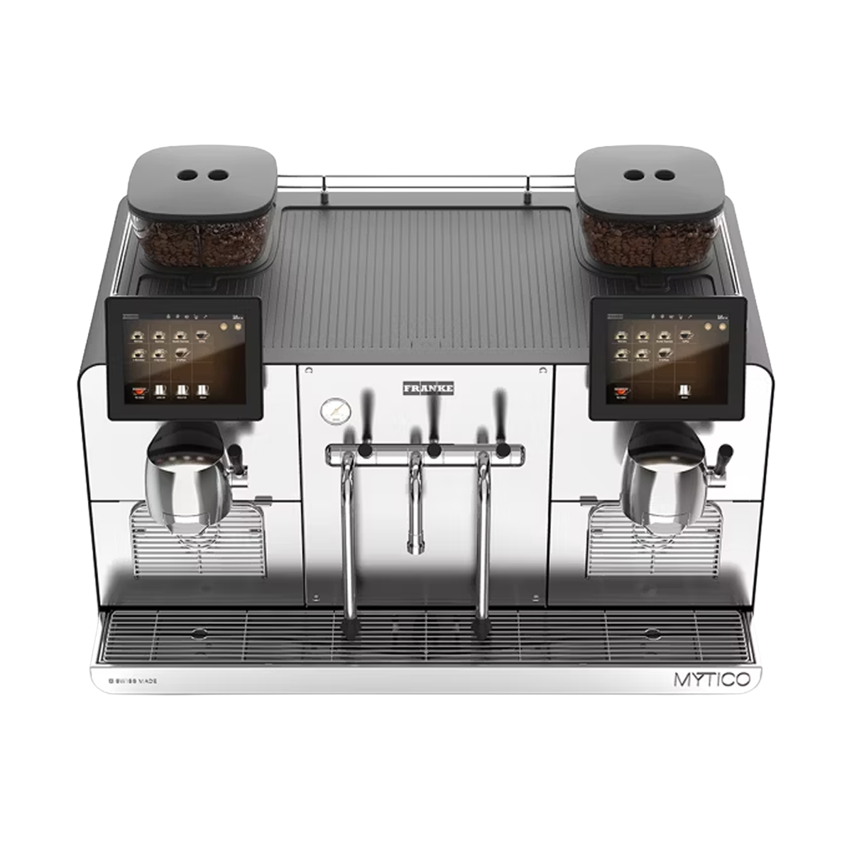 - Zwei 8″ Touchscreens: Ermöglichen eine getrennte, intuitive Bedienung für jede Brühgruppe und eine effiziente Getränkewahl
